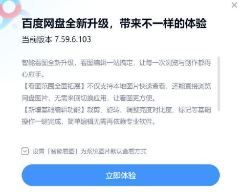 记者点击“智能看图”后,随即出现了系统“你要允许此应用对设备进行更改吗?”的弹窗,记者对上述系统弹窗选择拒绝后,继续使用“智能看图”打开图片,又出现了百度网盘的弹窗,弹窗显示“智能看图全新升级”等内容,并且有“设置智能看图为系统图片默认查看方式”的小字提示,对此,记者选择直接关闭该弹窗。